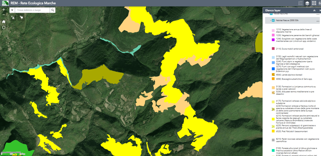L’area è interessata da un censimento specifico del territorio, come mostrato nel seguente estratto (REM – Rete Ecologica Marche):